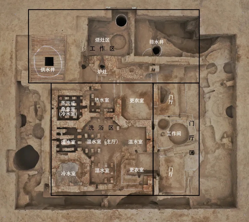 ▲唐朝墩古城大型公共浴场平面图。(图片由中国人民大学提供)