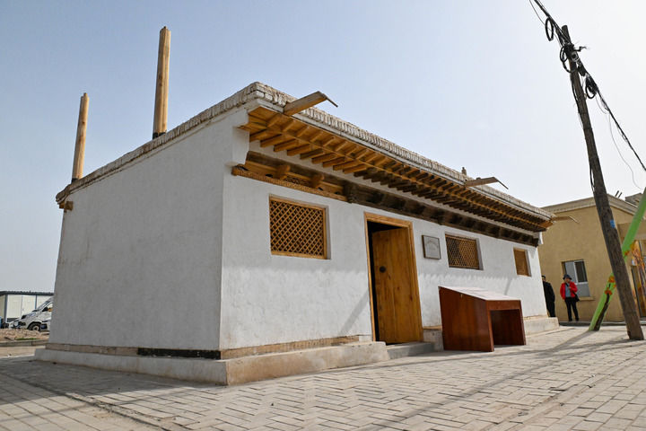 吾玛艳·阿西木民居位于新疆库车市热斯坦历史文化街区,建筑具有130余年历史,2010年1月被认定为一般不可移动文物。是库车市拯救老屋行动中首座修缮完成的古民居。(2023年10月19日摄)。