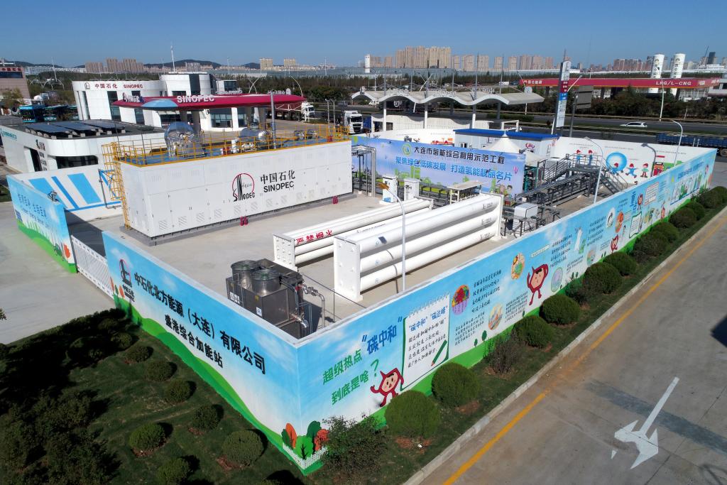 在大连盛港综合加能站,一辆辆天蓝色的氢能源公交车、白色的氢能源环卫车不时开进站内,不一会儿就能完成加氢操作。这座中石化旗下的甲醇制氢加氢一体站,每天可稳定产出1000公斤高纯度氢气,占地面积仅64平方米,场地利用率高,易于推广复制。