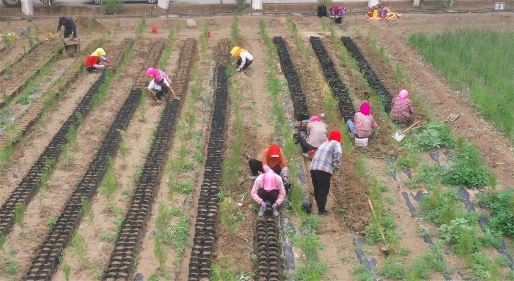 内蒙古乌拉特后旗新红林业管护中心正在育苗。新华社记者 李云平 摄