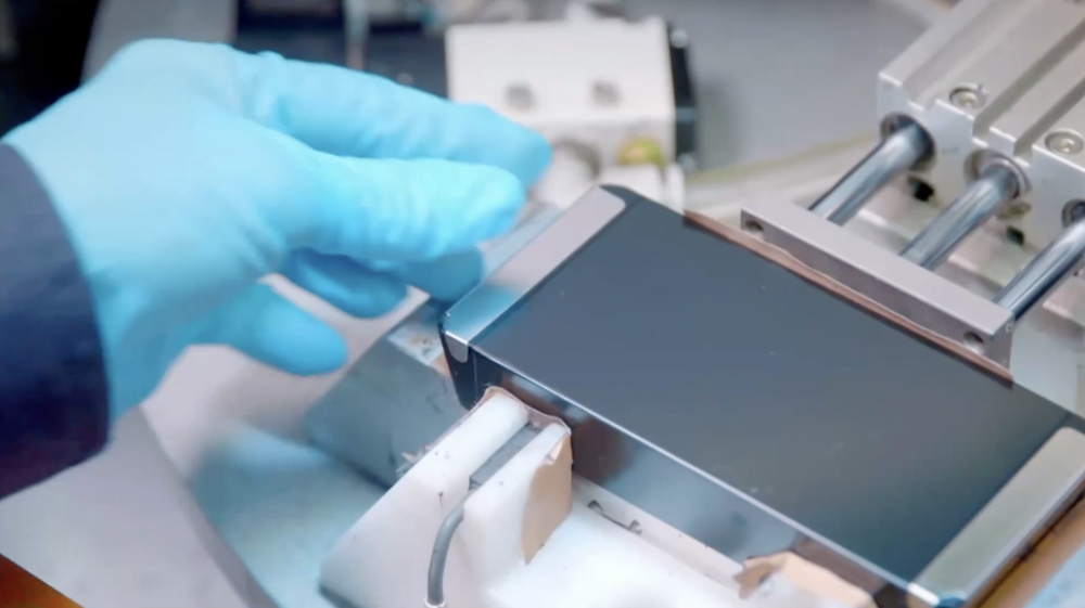 图为江西金力永磁科技股份有限公司生产线上生产的高性能永磁体。(视频截图)
