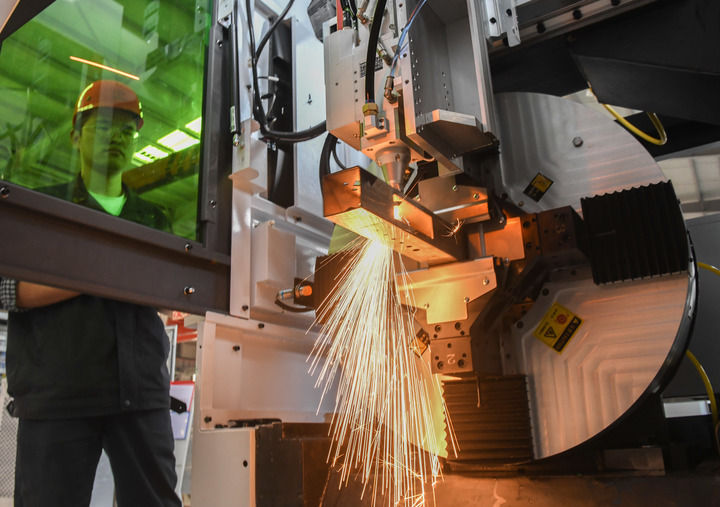华工科技产业股份有限公司工作人员在激光设备生产线上工作(资料照片)。(新华社记者 程敏 摄)