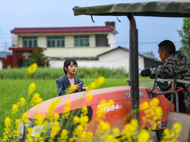 2024年3月26日,在四川省成都市崇州市隆兴镇,新农人王伶俐(左)和拖拉机手交流。新华社记者 王曦 摄