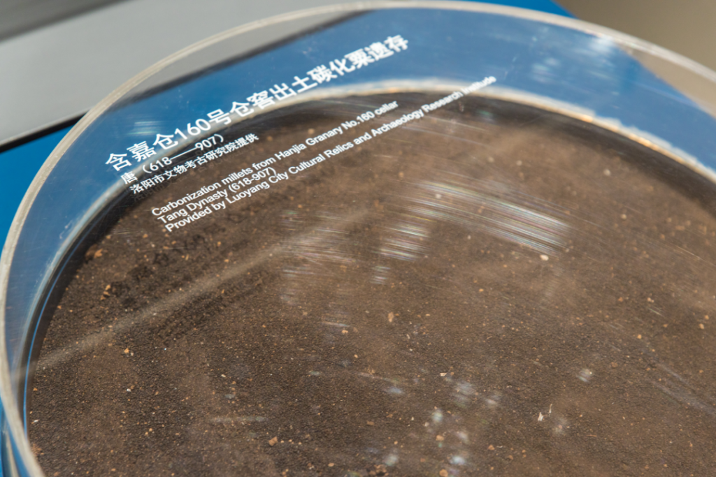含嘉仓160号仓窖出土的炭化粟遗存。 新华社发(扬州中国大运河博物馆供图)