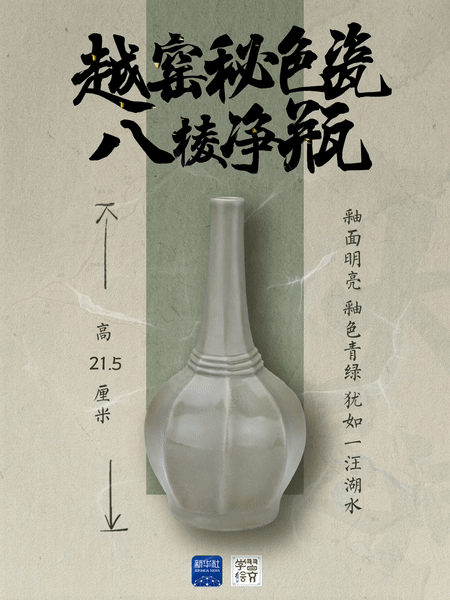 八棱净瓶是越窑秘色瓷中的一类典型器物。这件出土于浙江后司岙窑址的越窑秘色瓷八棱净瓶底部刻有“公”字,同类“公”字也见于陕西法门寺地宫出土的八棱净瓶底部。