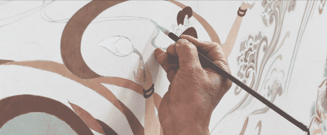 此外,敦煌研究院20多位艺术家,克服洞库交叉施工作业、通风条件差、环境阴湿等不利条件,采用矿物颜料,搭设脚手架平台,连续创作两个月,如期绘制完成7个洞窟壁画。