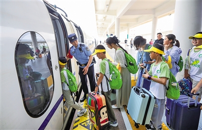 据介绍,在实施三季度列车高峰运行图的基础上,铁路部门每日安排增开临时旅客列车276列,较2023年同期增加128列,日均计划安排开行旅客列车约11500列。采取加开临时旅客列车、动车组重联、普速列车加挂车厢等方式增加热门方向运力,安排进京、进沪、进穗旅客列车满编组运行。在主要铁路枢纽储备一定数量的应急客车和乘务人员,遇突发客流可随时上线运行。紧密对接市场需求,组织开行旅游专列,与景区、酒店联动,拓展消费新场景,助力暑期旅游经济发展。