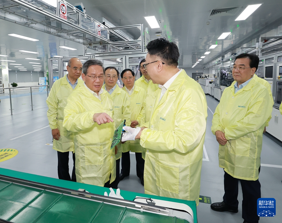 李强首先来到苏州汇川技术有限公司,察看最新产品展示,参观生产车间,了解企业研发生产工业机器人部件和汽车、装备领域的电机驱动及控制系统等情况。李强说,高端化、智能化、绿色化是制造业发展的重要方向,要继续鼓励和支持企业主动融入国家战略,瞄准国际先进水平,聚焦主业精耕细作,依靠科技创新带动产业创新、赢得发展先机。在思必驰科技股份有限公司,李强听取企业在人工智能软件、芯片等方面研发进展介绍,了解向汽车、家电等行业提供产品解决方案情况,体验语言大模型技术。李强说,大模型的迅猛发展,正在催生研发设计和生产制造方式颠覆性变革。要发挥我国市场规模大、需求层次多、应用场景丰富等优势,着力推动面向各行业各领域的垂直应用,促进人工智能与实体经济深度融合,加快培育壮大智能产业。