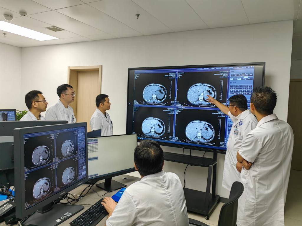 7月4日,在米易县医共体放射影像诊断中心,医生们正在讨论患者的病情。新华社记者董小红 摄