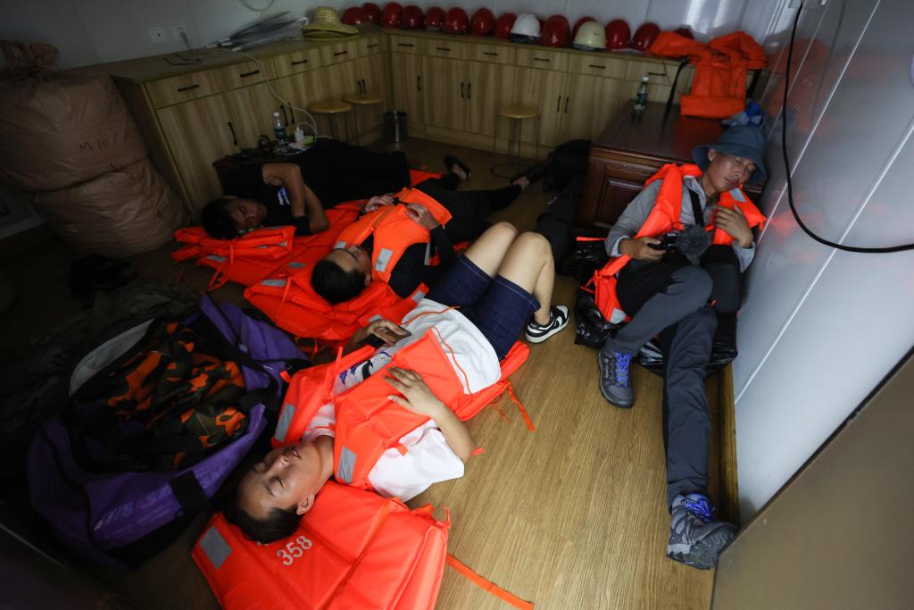 5月26日,在“利洋358”科考船上,连夜轮值后的工作人员躺在地板上休息。
