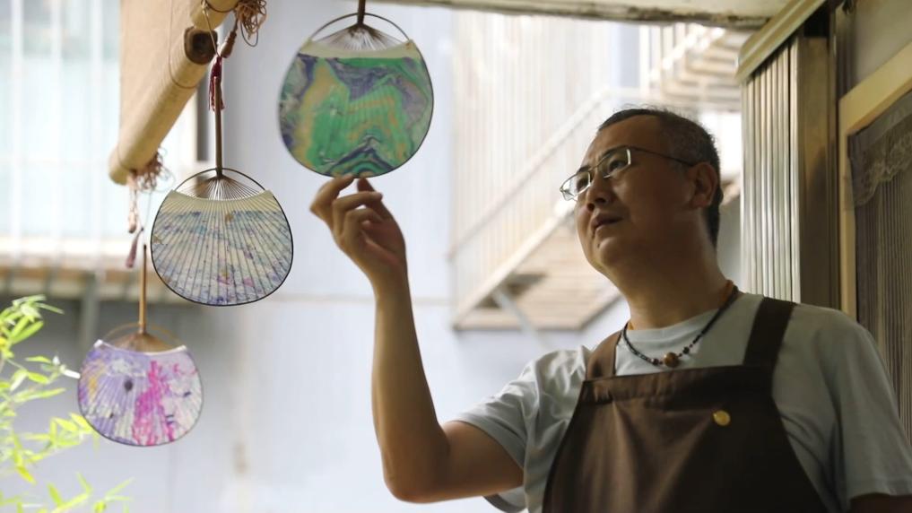 段炜刚的大漆技艺源自家传。他说,传统漆艺工序异常复杂。近年来,他借助漆扇这一方式,带动更多人体验中国传统漆艺所蕴含的诗情画意。