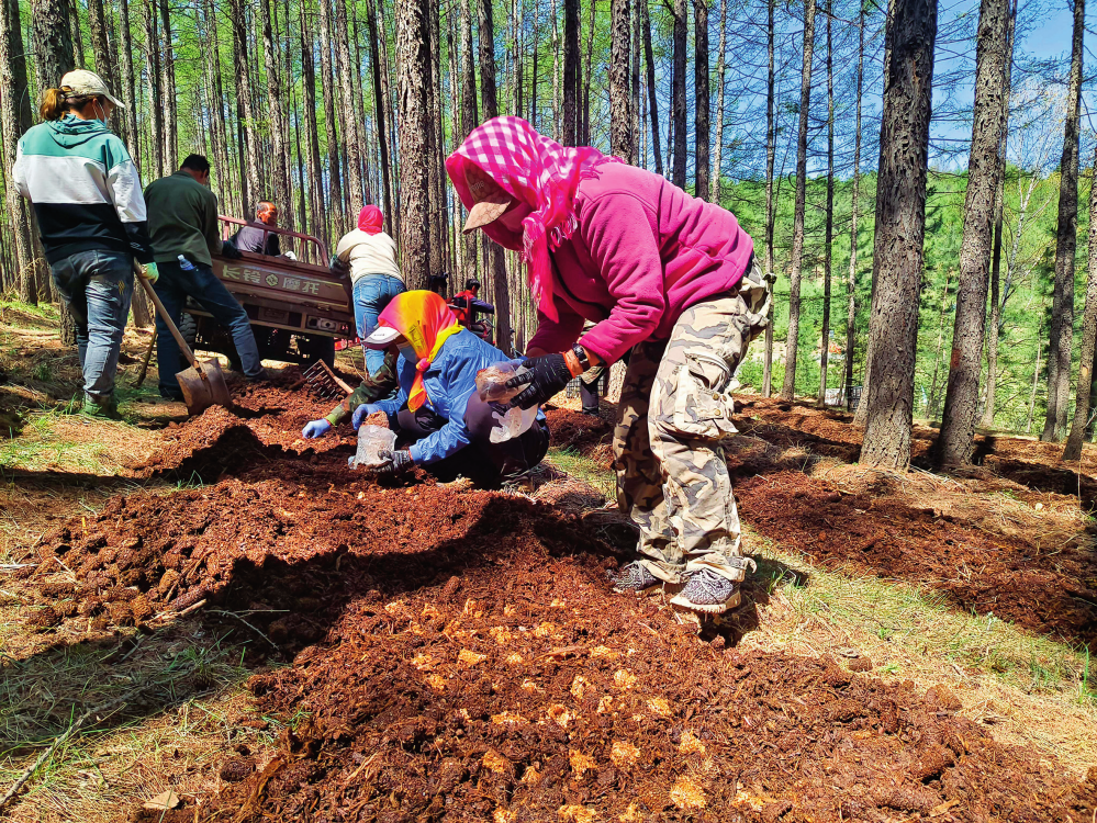 内蒙古赤峰市喀喇沁旗工人在林下种植赤松茸(2024年5月10日摄)赵建楠摄
