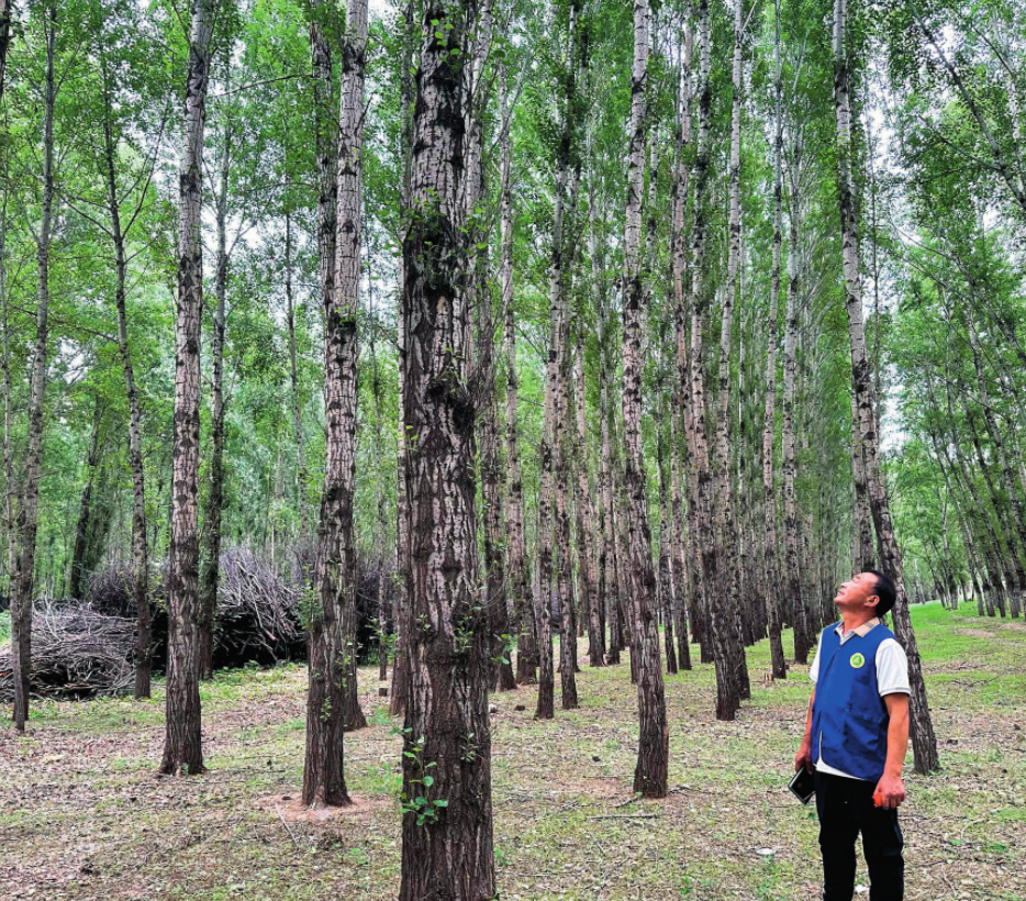 内蒙古兴安盟突泉县学田乡三合村的刘长春在巡护管护区树木(2024年6月10日摄)宋健摄
