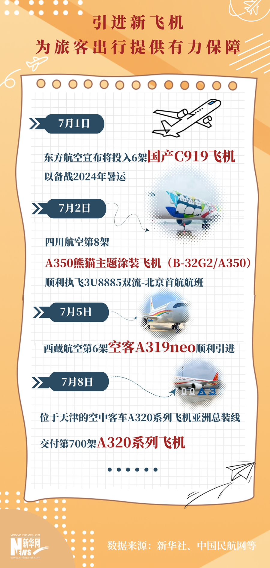 7月8日,位于天津的空中客车A320系列飞机亚洲总装线交付第700架A320系列飞机,该飞机为空客A320neo飞机,共设180个经济舱座位。