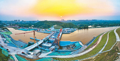 平陆运河青年枢纽泄洪闸全景。本版图片均由平陆运河集团有限公司提供