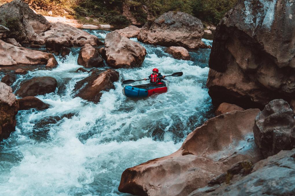 7月16日,来自贵州的白水爱好者划着背包船挑战洛北河乱石峡段。(受访者供图)