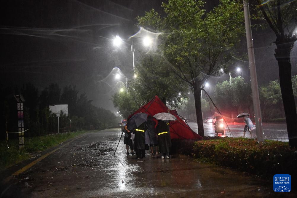 连日来,河南省南阳市遭遇大范围强降雨天气。这是7月18日,持续的降雨压塌了唐河县唐河边吕湾社区防汛值班点的帐篷。