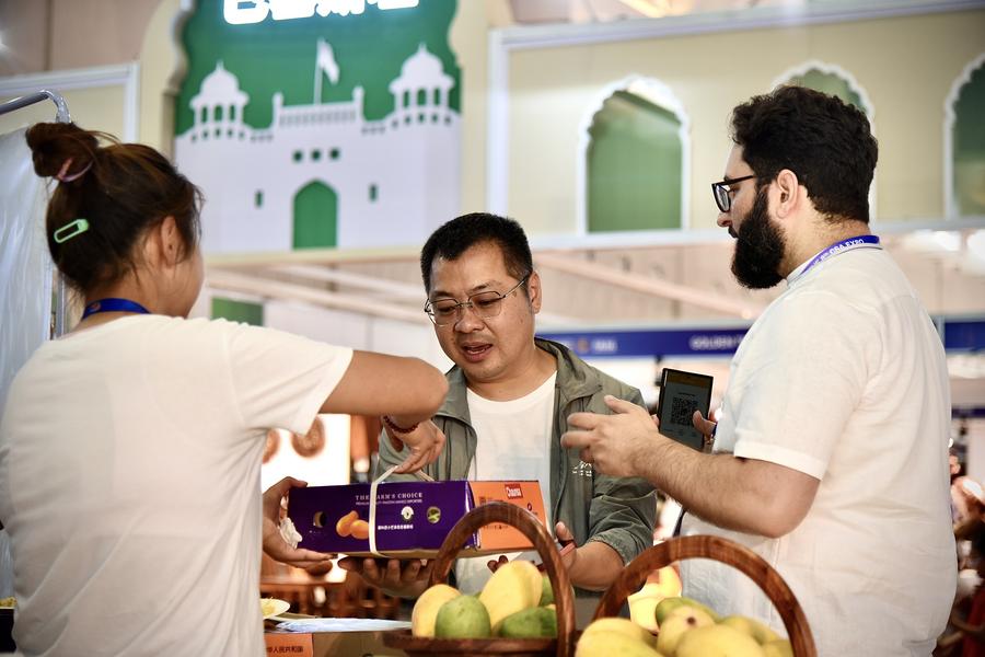 来自巴基斯坦卡拉奇的参展商阿德南·哈菲兹今年第一次到南博会来参展。他曾在中国大连留学8年,说着一口流利的中文。据他介绍,产自巴基斯坦信德省和旁遮普省的芒果,从5月份至9月份接力成熟,它们会乘坐从卡拉奇飞往南宁的班机,清关后通过快递分发到中国各地。