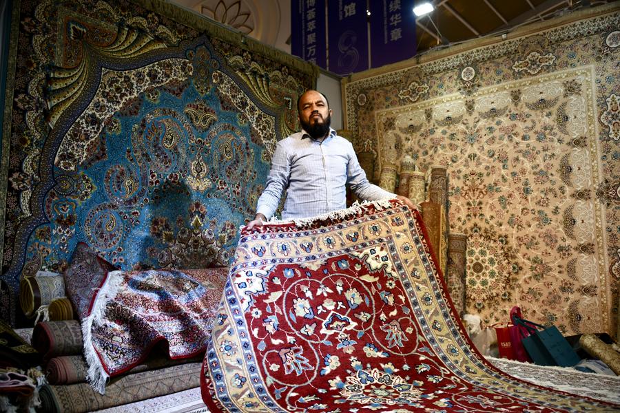 巴基斯坦展区有150多个展位,90多家企业参展。手工地毯、玉石、花梨木家具、各类皮具皮衣及手工艺品等来自巴基斯坦的展品琳琅满目。