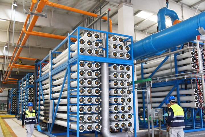 这是青岛水务百发海水淡化厂生产车间内景(2023年3月20日摄)。新华社记者 李紫恒 摄