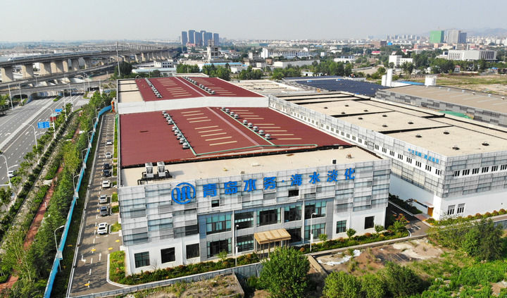 位于青岛市李沧区的青岛水务百发海水淡化厂(无人机照片,2024年7月10日摄)。新华社记者 李紫恒 摄