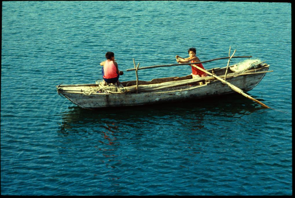 1985年,高邮水运专业户陈志德和李秀兰在大运河上跑船。