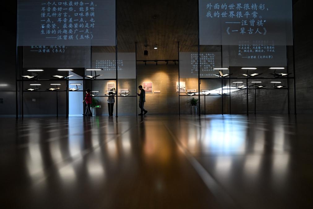 整个纪念馆的形态宛若一摞叠放的书本,错落有致。现代化的建筑造型和“诗与故乡”的主题无比契合。纪念馆分两层、11个展厅,由“百年汪老”“汪曾祺的文学世界”“家乡的人和事”等部分组成,每个篇章连接在一起,勾勒出汪曾祺一生辗转的地理轨迹,也再现了他笔下丰富多彩的文学世界。