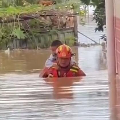 7月29日,湖南湘潭涓水漫堤决口,洪水淹没大量房屋,一名小男孩被困,消防人员随即展开救援,由于积水较深,救援人员背着男孩慢慢淌过,给了男孩满满的安全感。有网友说,这一刻,他的肩膀就是最坚持的依靠。