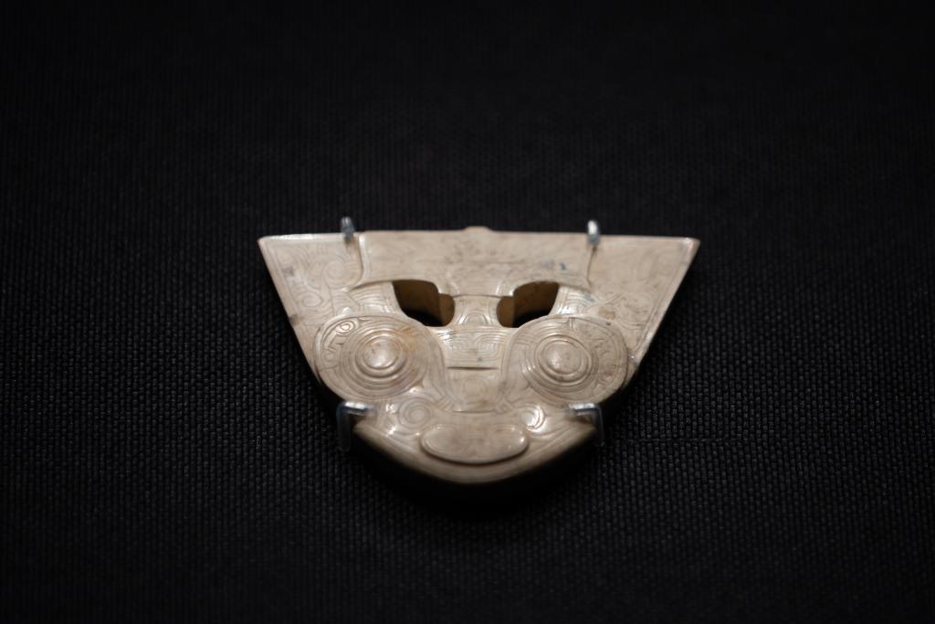 良渚文化神人兽面纹玉牌饰。新华社记者 黄伟 摄