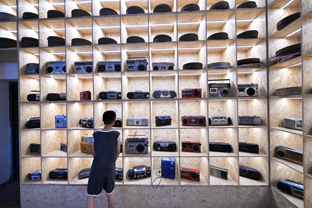2024年7月10日拍摄的山西经纬Go Home艺术中心综合馆展出的电视机。