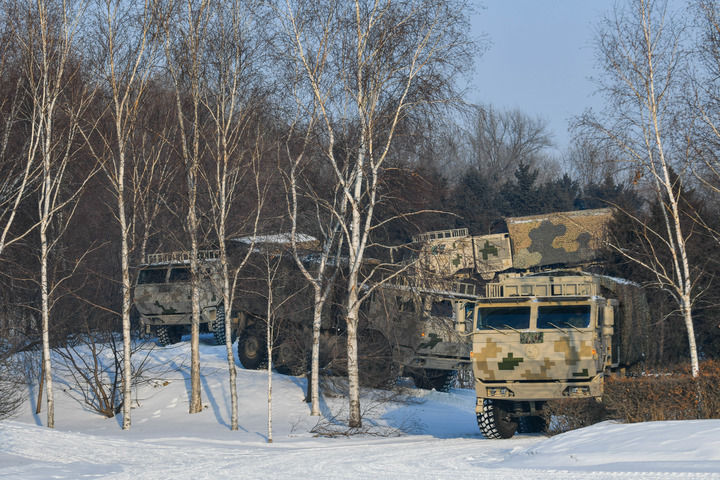 联勤保障部队某汽车运输旅运输分队开展战地驾驶课目训练(2024年1月2日摄)。新华社发(赵佳庆 摄)