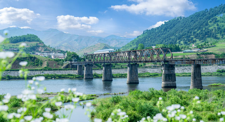 这是地处中朝边境、位于吉林省集安市的鸭绿江国境铁路大桥(2023年6月17日摄,无人机照片)。新华社记者 周万鹏 摄