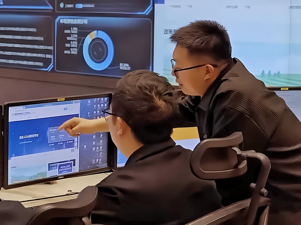 工作人员在查看“融信服”平台的数据。(受访对象供图)