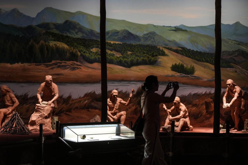 2014年6月14日拍摄的牛河梁国家考古遗址公园祭坛、积石冢保护展示馆内景。