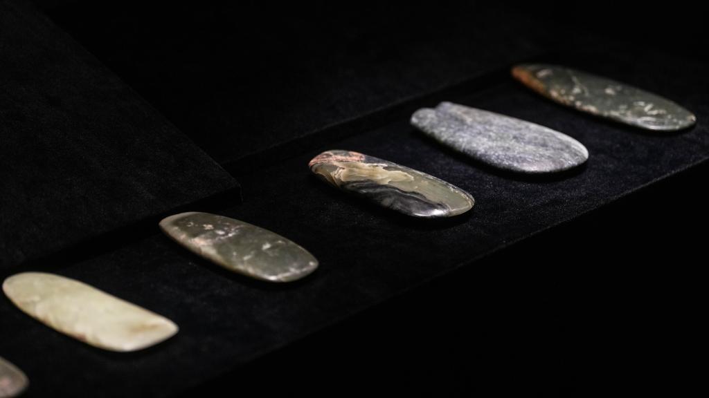 2024年8月3日在牛河梁遗址博物馆拍摄的展品玉斧。