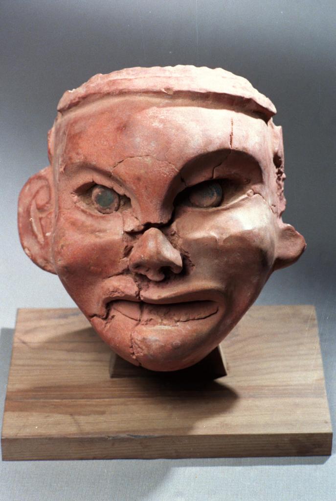 1983年10月,考古工作者在牛河梁遗址女神庙主室西侧群像残体中,首次发现一个较完整的接近真人大小的彩塑女神头像,其眼珠是用绿色磨圆玉片镶嵌而成,右下图为女神左手。