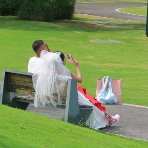 摄影师刘宇晨会在社交媒体上经营账号来招揽顾客,临近七夕,她也逐渐忙碌起来:为新人推荐服装道具,争分夺秒修图“方便新人们发朋友圈”,有时也会承接化妆业务。大喜字、头纱等道具常备在身边,在一个多小时的拍摄时间内,刘宇晨会尽量多拍一些,“这是新人们生命中的重要时刻,作为摄影师一定要用心记录好。”