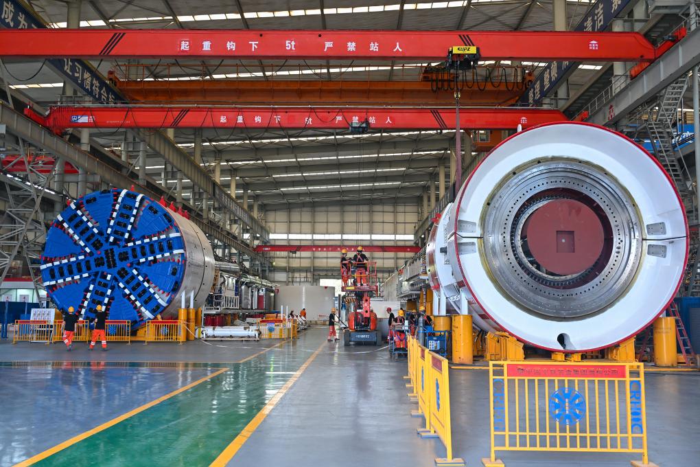位于长沙的中国铁建重工集团股份有限公司和位于郑州的中铁工程装备集团有限公司也给出了同样答案。走进这两家企业的总装车间,会看到一台台四五层楼高、数十米长、几百吨重的金属“巨兽”耸立,庞大的刀盘还带有威武霸气的个性化设计“前脸”。它们是正在为外国客户生产的用于开凿公路和铁路等隧道的盾构机。