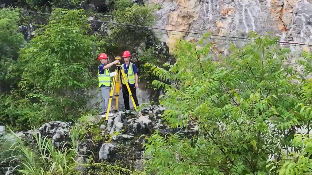 阿蓬江大桥位于武陵山区腹地的重庆市酉阳土家族苗族自治县龚滩镇,大桥直连的龚滩隧道出口,位于垂直于江面的近200米高的崖壁上。此处崖壁属危岩体组成的复杂地质,落石隐患极大,部分桥梁结构不得不采用深入崖壁的“隧中桥”形式修建。要实现这样的“隧中桥”,控制误差、精准测量是第一步。