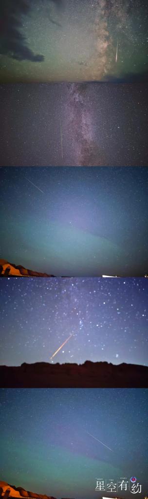 “我们8日抵达哈密后就开始了观测活动。越是临近极大期,观测到的流星数量越多。这些流星中,很多都是‘红头绿尾’,其中不乏异常明亮的火流星。11日和12日晚,我们均做了直播,将浪漫的流星雨分享给国内网友,一起感受这场星空的年度盛宴。值得一提的是,12日还发生了大地磁暴,我们因此幸运地遇上了极光。有了极光的加持,让这场流星雨变得更加美丽。”王俊峰说。