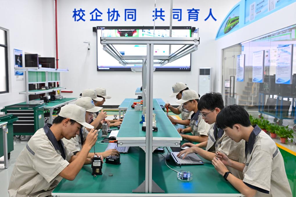 7月26日,湖南铁道职业技术学院的学生在车载电源运维实训室进行核心零部件的拆装与检测训练。新华社记者 李鑫 摄