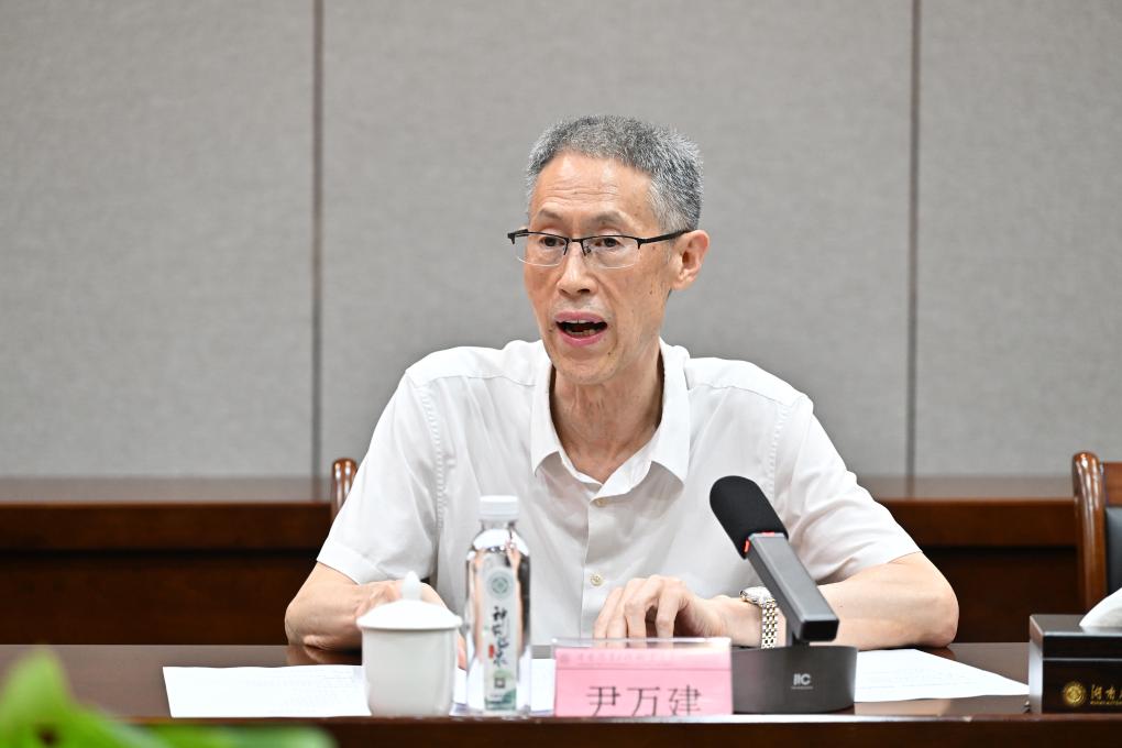 7月26日,湖南汽车工程职业大学校长尹万建在座谈会上介绍学校情况。新华社记者 李鑫 摄