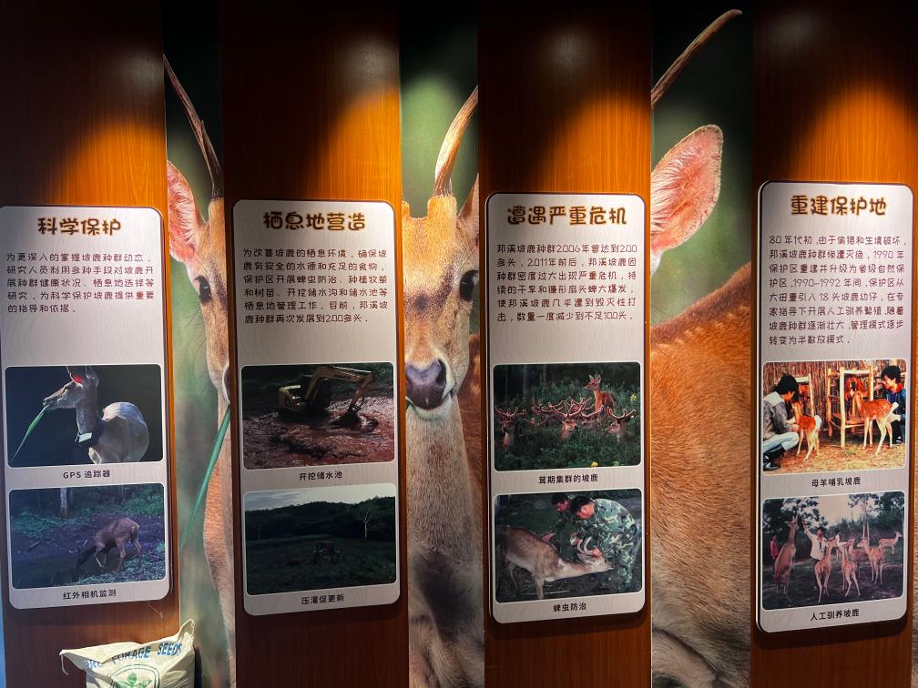 海南坡鹿科教馆展板。新华社记者 陈子薇 摄