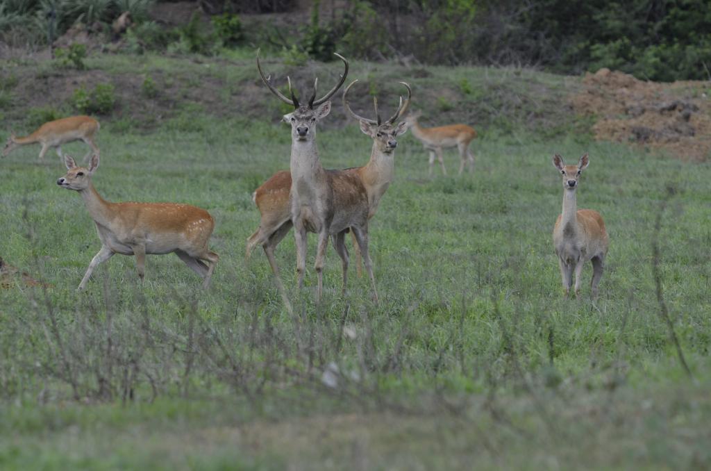 海南坡鹿生存的区域属于半干旱区,为解决坡鹿食草和饮水问题,保护区挖了数个水池,在旱季人工补水,还种植了坡鹿喜食的优质牧草,人工挖除劣质植物,为坡鹿提供丰富的食物。
