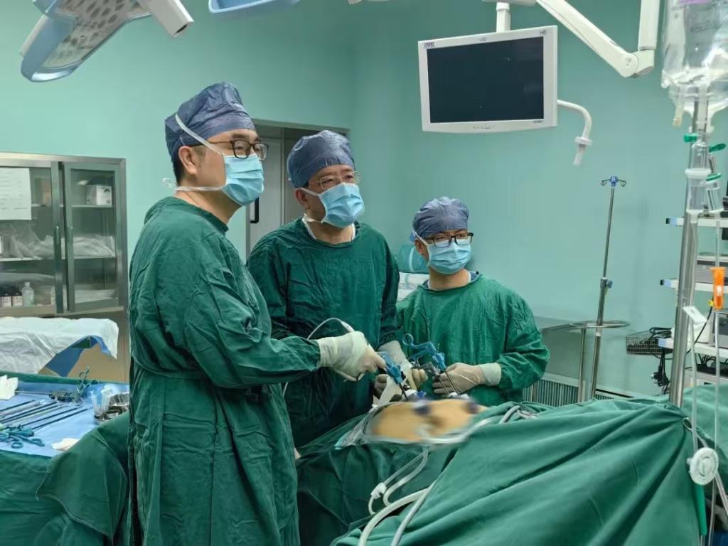 图为北京友谊医院副院长张忠涛(中)正在为患者进行减重手术。新华社发
