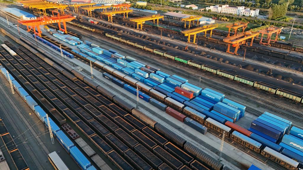2023年9月19日拍摄的中欧班列(沈阳)集结中心(无人机照片)。新华社记者 杨青 摄