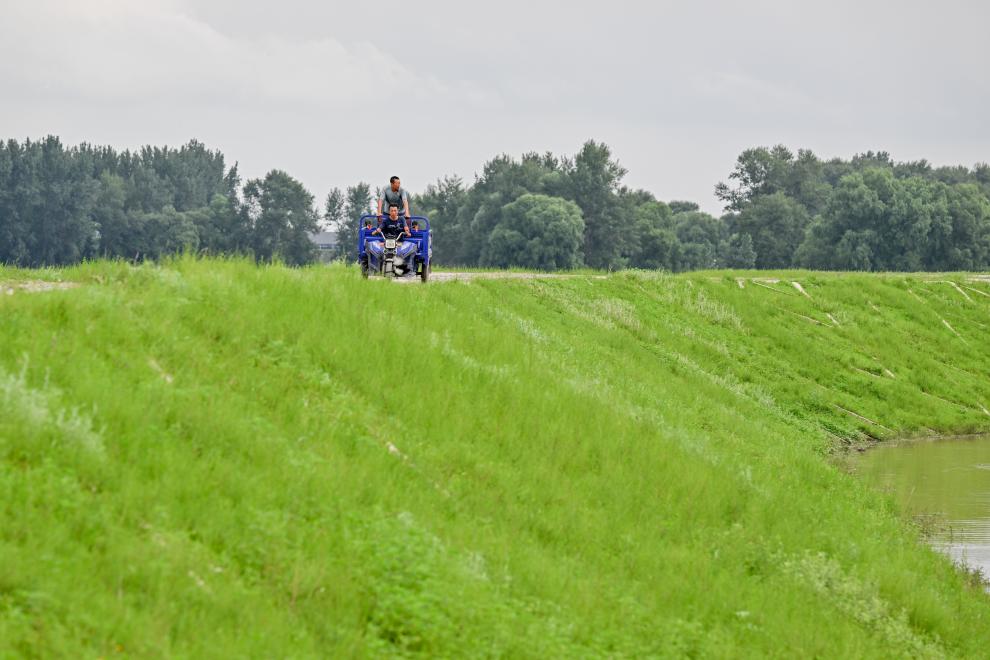 8月2日,科尔沁左翼后旗双胜镇群众自发在东辽河大堤上巡护。新华社记者连振 摄