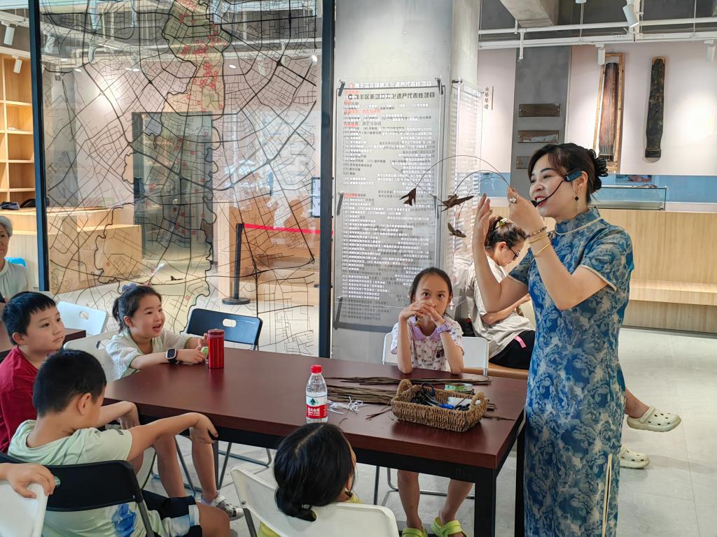 用几片棕榈树叶、一把剪刀,施展魔法般地编出了精巧的蚂蚱,栩栩如生……这个暑期,成都市青羊区文化馆非遗馆组织了多场非遗体验活动。