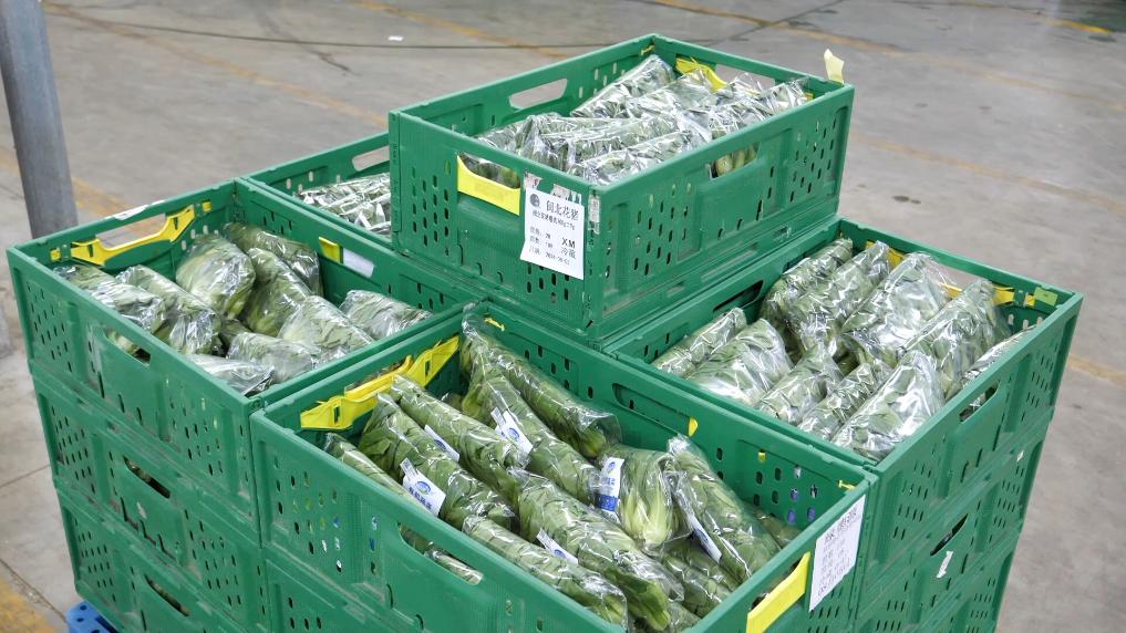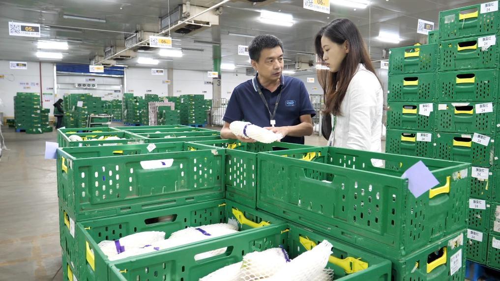 在朴朴超市福州总仓,产自河北的流星包菜、云南白菜、山东西红柿等蔬菜有序排列。福州朴朴电子商务有限公司公共事务经理林夏淅说,今年8月1日至8月19日,朴朴超市整体的蔬菜平均售价环比7月增长4.9%。