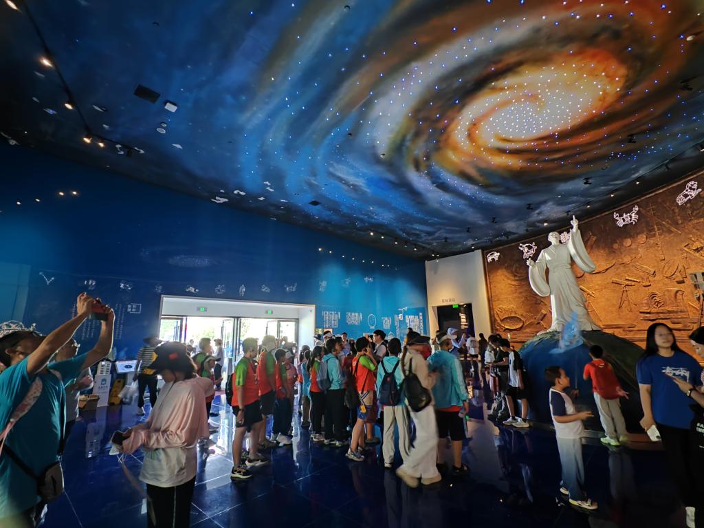 8月14日,游客在天文小镇上的天文体验馆参观。新华社记者 齐健 摄